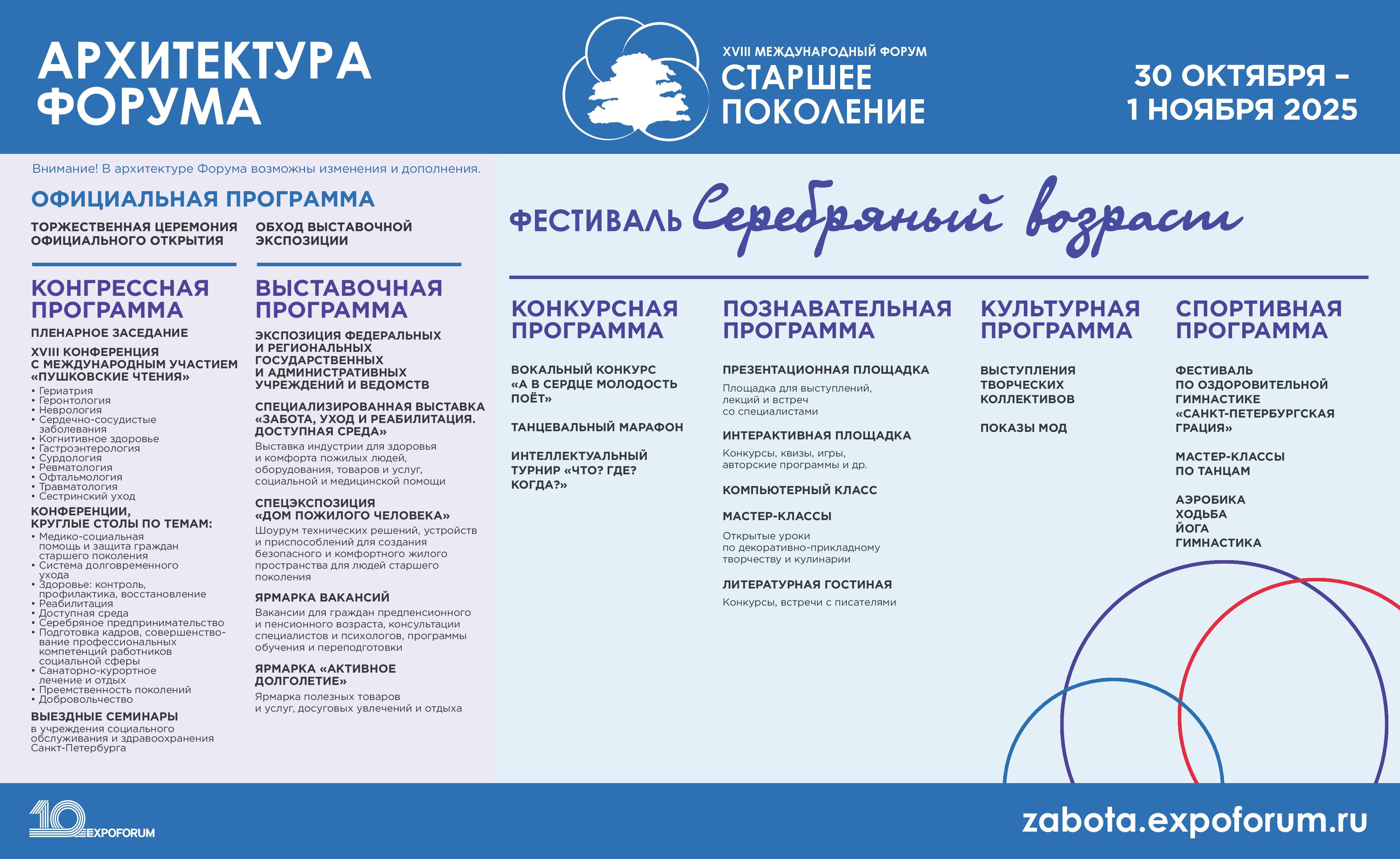 Актуальная программа Форума размещена на сайте: zabota.expoforum.ru.