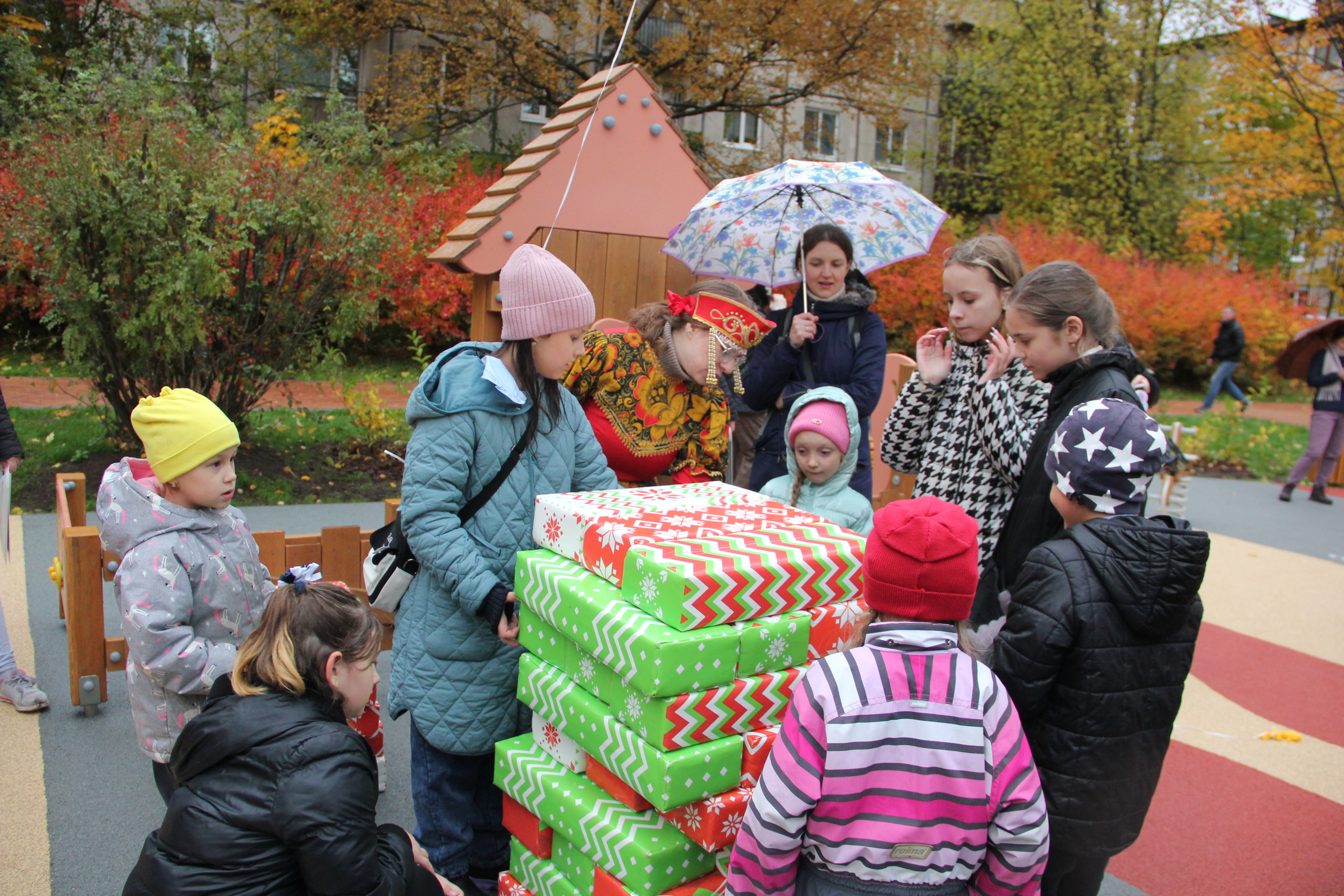 Для самых маленьких участников праздника была подготовлена развлекательная программа с играми и призами. Вместе со сказочными героями Василисой, Марьюшкой и Алёшей мальчишки и девчонки провели танцевальный флешмоб, весёлые эстафеты, поиграли в кольцеброс, попрыгали через большую скакалку, собирали гигантскую джингу, ну и просто катались на новых качелях, лазали по горке и лакомились леденцами, полученными за участие в играх. И даже небольшой дождь не смог помешать празднику. Судя по лицам, и детям, и родителям было весело.