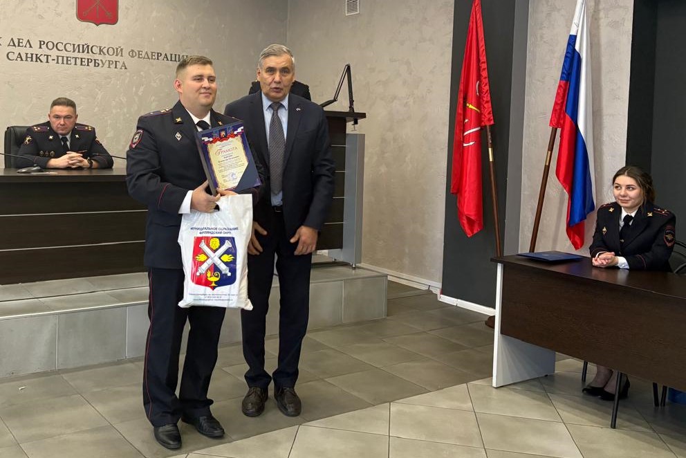 На торжественном мероприятии, посвященном праздничной дате, за выполнение особо сложных и важных заданий по итогам оперативно-служебной деятельности, добросовестное исполнение служебных обязанностей и высокие показатели в профессиональной деятельности глава Финляндского округа вручил грамоты начальнику УМВД, полковнику полиции Андрею Селюгину, капитану полиции Яну Францкевичу и младшему лейтенанту полиции Владиславу Бороздину.