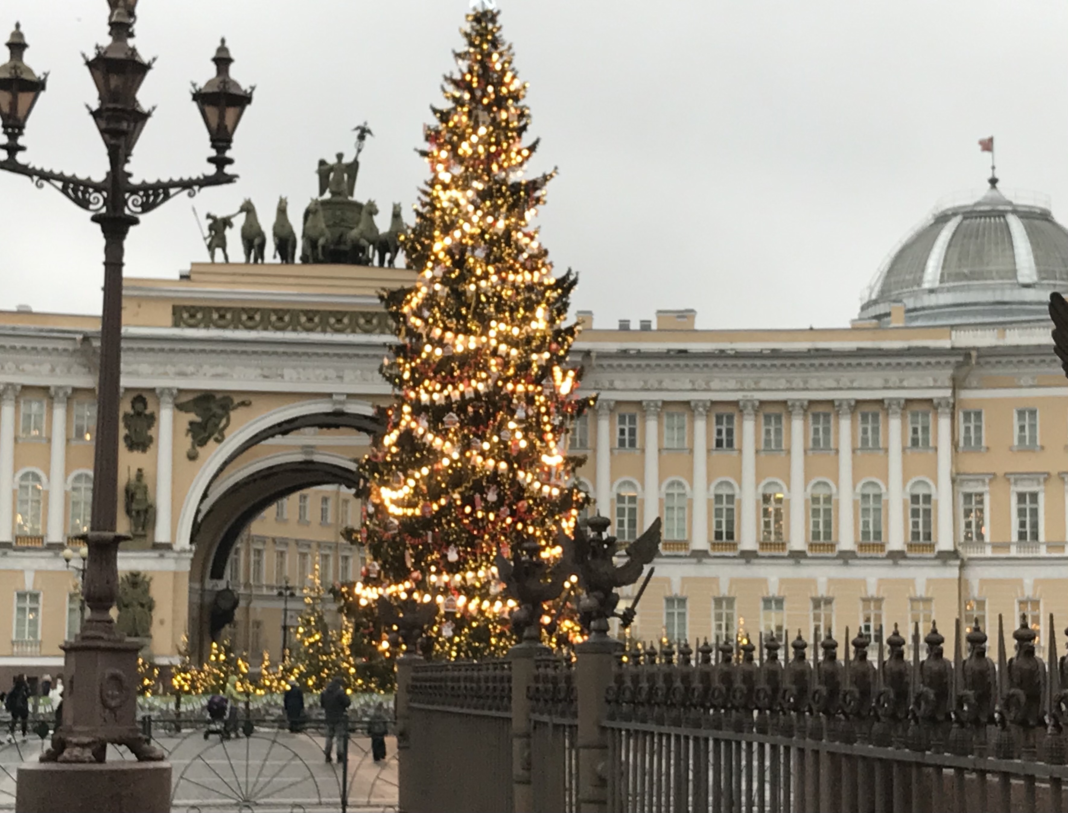 13 декабря здесь откроется главная Рождественская горка, а 20 декабря установят главную городскую ёлку. Её привезут её из Копорского лесничества Ленинградской области. Также на этот день на Дворцовую площадь пожалует Всероссийский Дед Мороз, который торжественно зажжет огни на главной елке города.