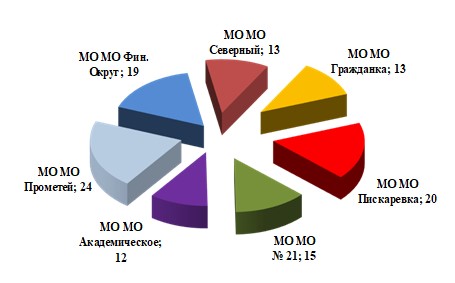 Диаграмма пожаров в жилых домах по муниципальным округам района
