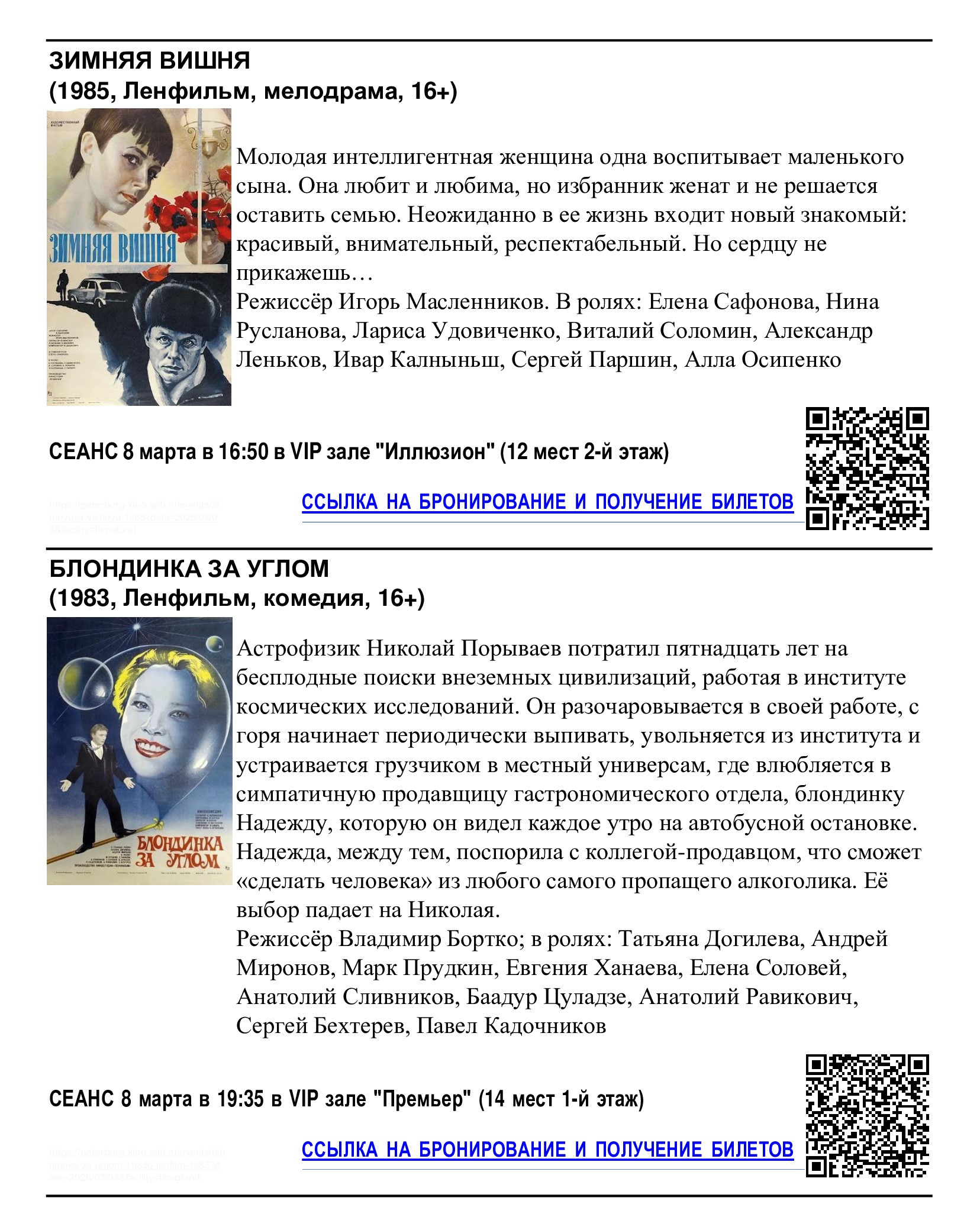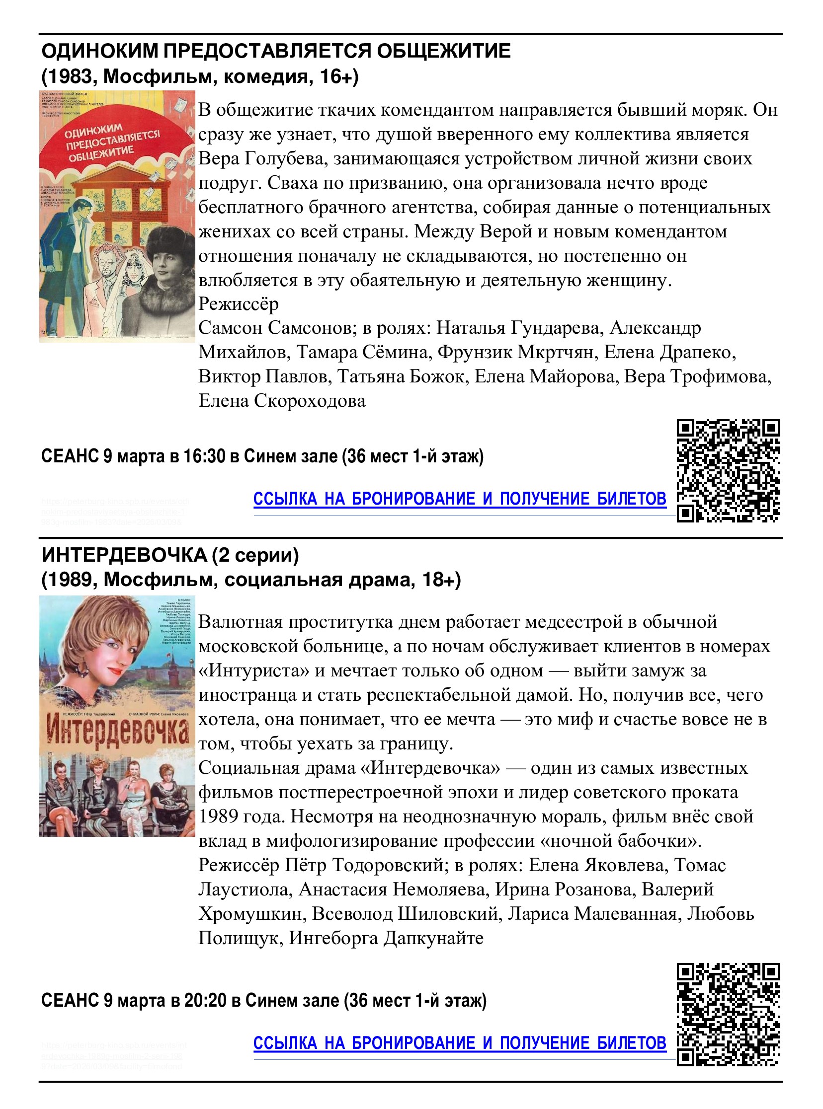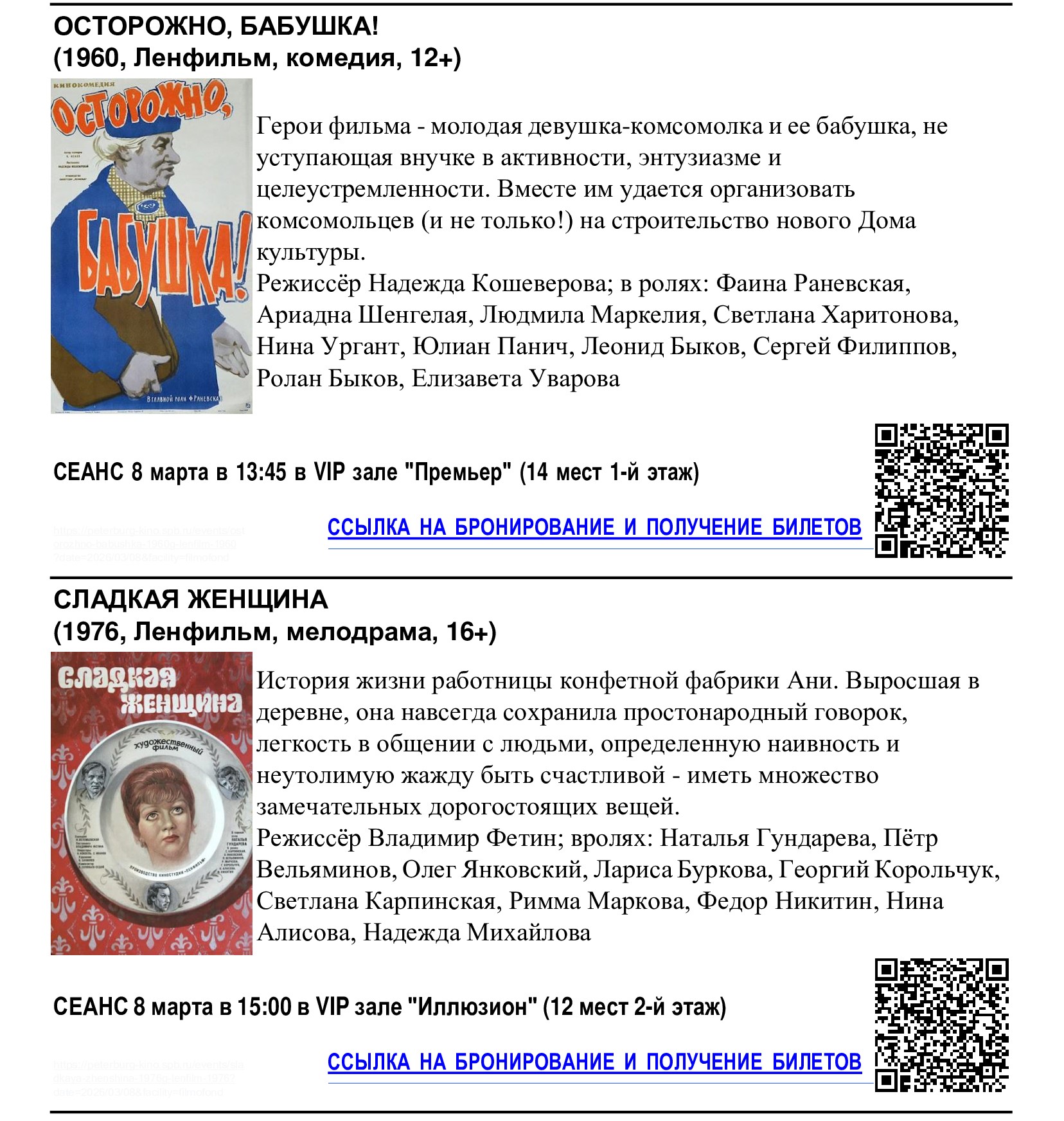 Бесплатные сеансы в кинотеатре «Фильмофонд», посвящённые Международному женскому дню