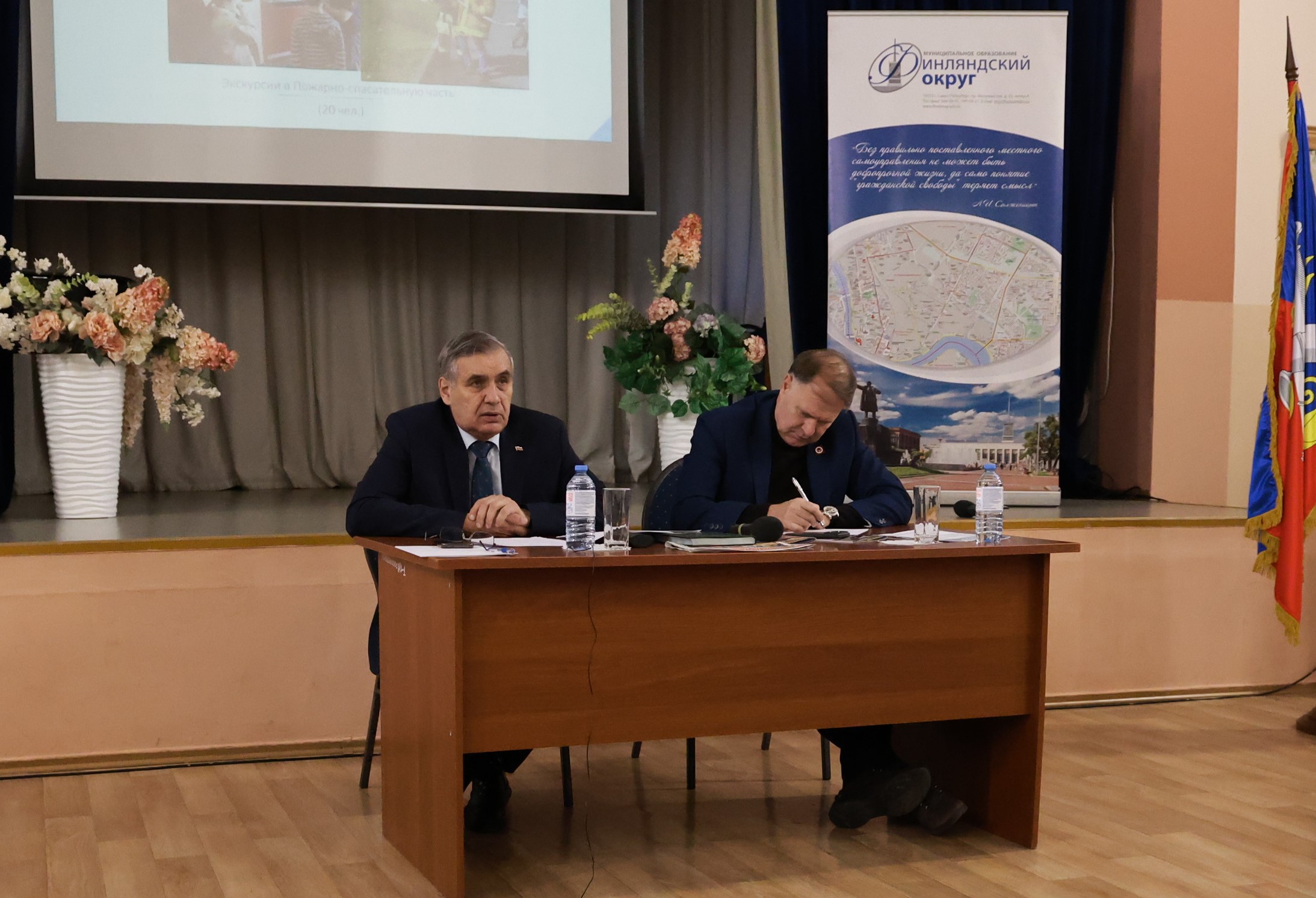 Перед началом отчёта состоялось вручение Почётной грамоты от Законодательного Собрания депутату Муниципального совета, директору школы №138 Светлане Константиновой и знаков «Почётный житель Финляндского округа» Галине Петренко и Людмиле Чекан. Был показан фильм о развитии и достижениях Санкт-Петербурга в 2025 году. Затем глава округа проинформировал жителей о результатах работы Муниципального совета и Местной администрации за прошедший год и ответил на вопросы из зала.