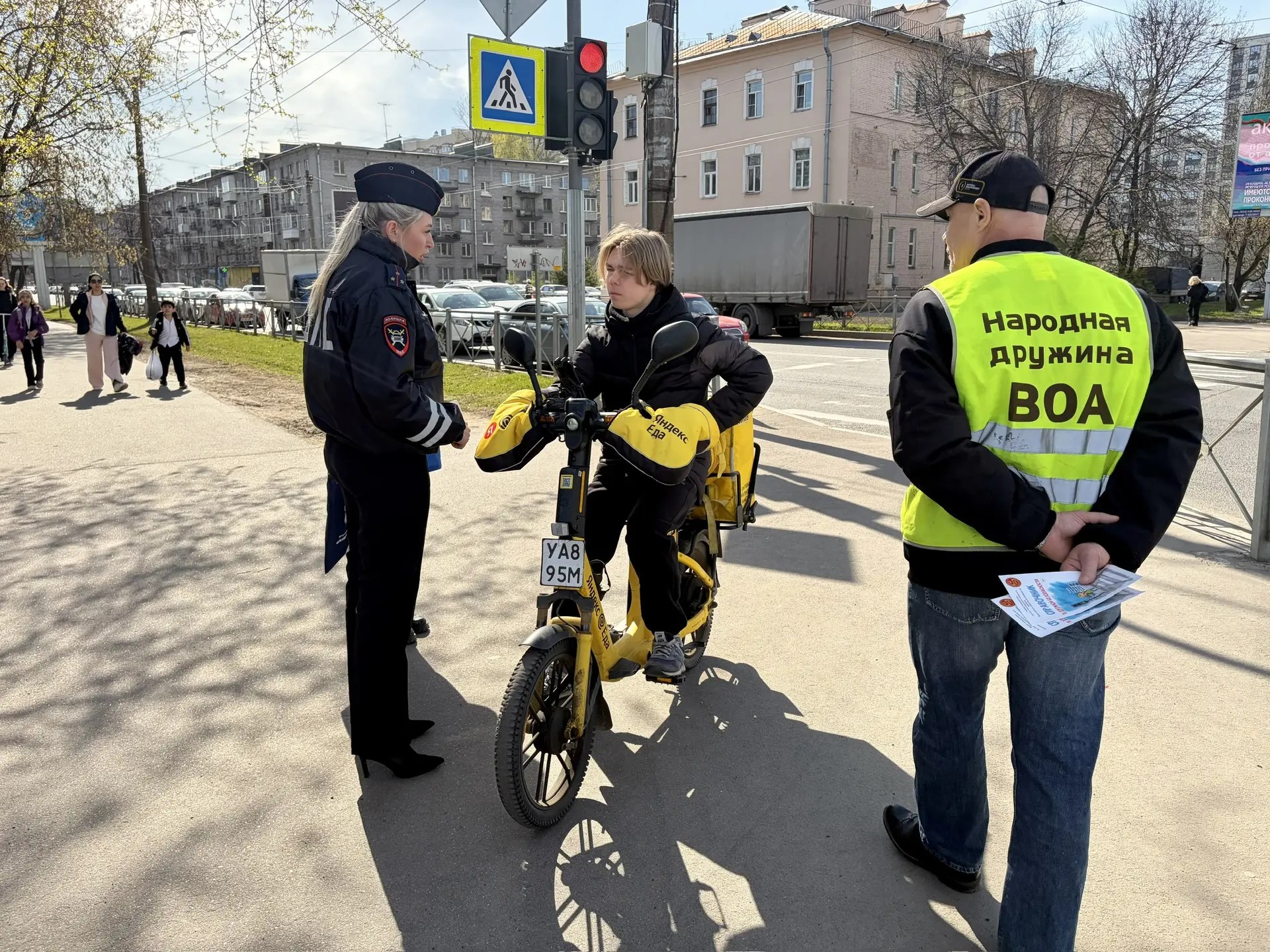 20 апреля рейд состоялся на Кондратьевском пр., д. 18-20. А 21 числа - на пересечении Кондратьевского проспекта и проспекта Маршала Блюхера. И здесь уже мероприятие проводилось совместно с представителями Госавтоинспекции и Народных дружин - Всероссийского общества автомобилистов и "Калининская".