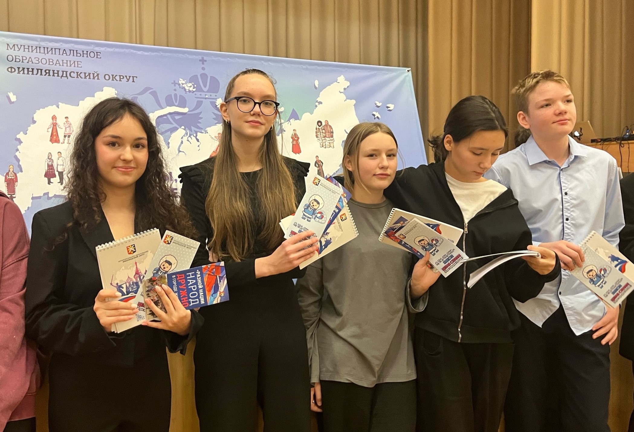 В лицее №126 Местная администрация организовала интерактивную игру по станциям «Я, ты, он, она – вместе целая страна». Ребята познакомились с бытом эвенков, узнали, как живут ненцы и чукчи, жители Северного Кавказа и Карелии. По правилам игры участники разделились на команды и ходили по станциям, каждая из которых включала в себя интерактивное задание на знание культуры и традиций народов одного из регионов России, которое надо было выполнить на время. Но среди интеллектуальных конкурсов нашлось место и для весёлых состязаний. Например, когда играли в народные игры «Волчок» и «Проворных мотальщиков», развивающие ловкость, глазомер и мелкую моторику. В конце мероприятия всем его участниками были вручены памятные призы: блокноты с наклейками и евробуклеты об уникальном национальном многообразии нашей страны.