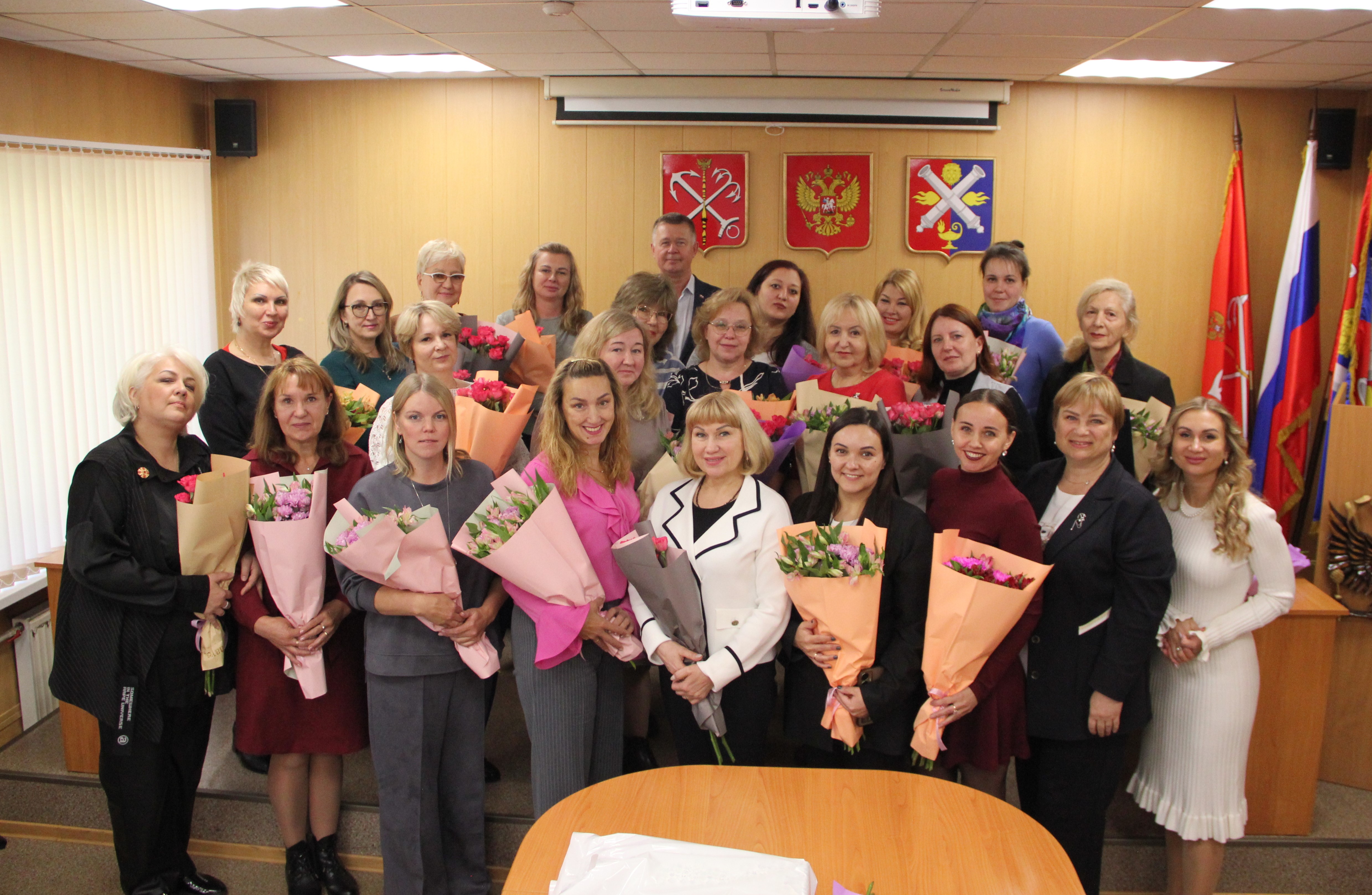 Сегодня в муниципалитете чествовали людей, делом своей жизни выбравших воспитание и заботу о самых маленьких жителях нашего округа. В преддверии Дня воспитателя и дошкольных работников, который отмечается 27 сентября, с профессиональным праздником глава округа Игорь Кудинов вместе с председателем Совета муниципальных образований, депутатом Законодательного Собрания Санкт-Петербурга Всеволодом Беликовым, а также с коллегами: Игорем Шесточенко – заместителем главы муниципального образования и руководителем аппарата Муниципального совета Татьяной Демидовой поздравили заведующих и воспитателей детских садов, расположенных на территории нашего округа. В адрес виновников встречи было сказано немало добрых слов и пожеланий, а в благодарность за работу преподнесены цветы и памятные подарки.