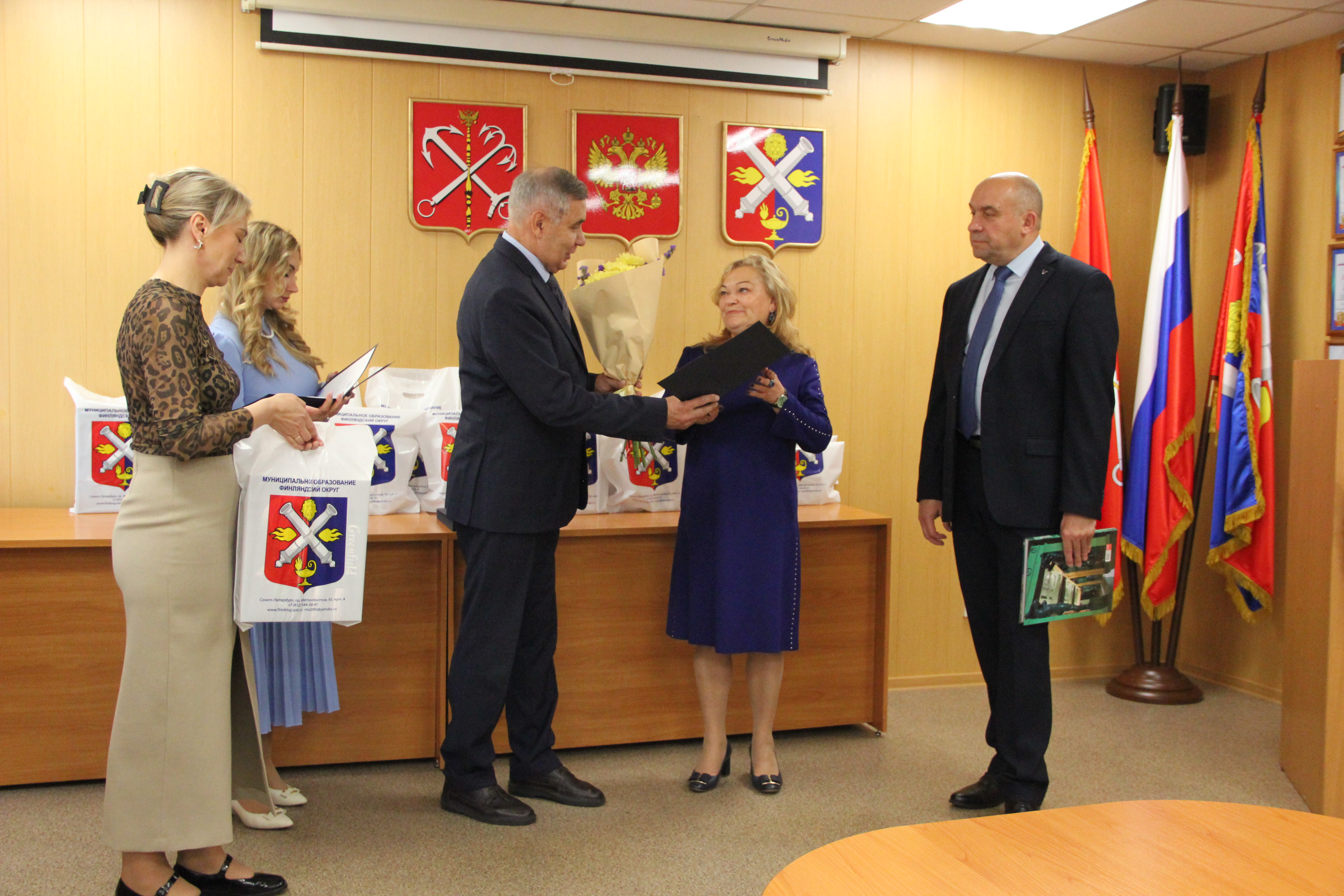В преддверии праздника с Днём учителя педагогов шести школ, расположенных на территории нашего муниципального образования, поздравили глава Финляндского округа Игорь Кудинов и глава Местной администрации Людмила Дмитриева, вручив им грамоты, цветы и подарки. В поздравительной речи руководители муниципалитета отметили важность их профессии, незаурядное мастерство, творческий подход в работе и мудрость наших преподавателей.