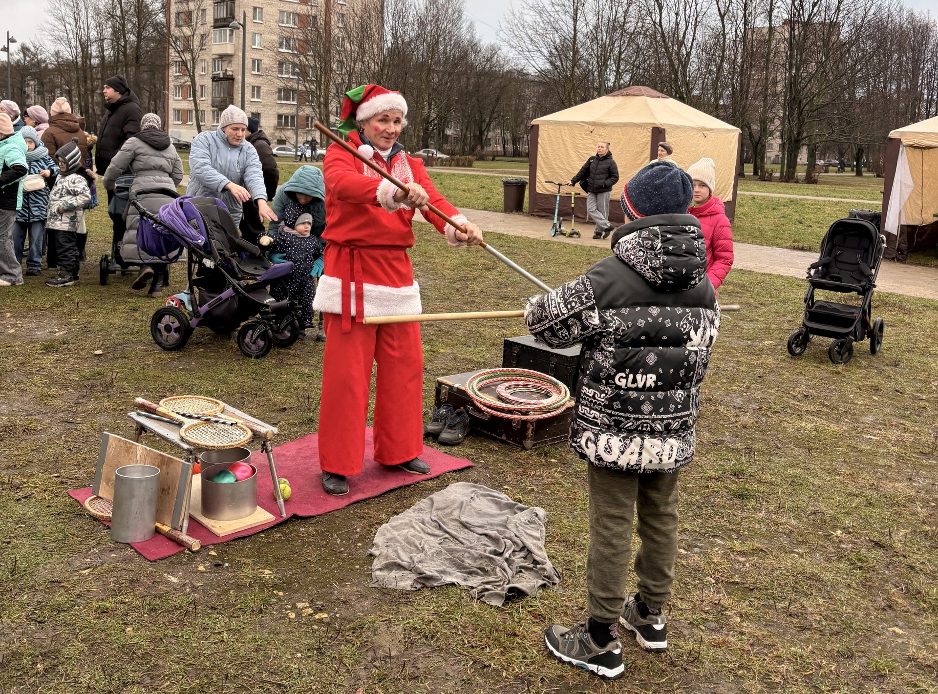 В воскресенье в Любашинском саду прошли праздничные гуляния. За полчаса до официального начала мероприятия у красавицы-ёлки развернулись весёлые аттракционы: дети и взрослые смогли попробовать свои силы в играх «Русская красавица», «Кольцеброс» и «Мегаласты». Аниматоры в новогодних костюмах развлекали гостей, малыши с удовольствием фотографировались с ростовыми куклами и все угощались сладостями с горячим чаем.