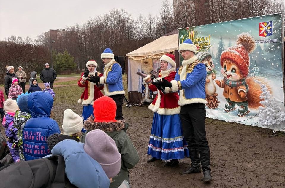 Ровно в полдень прозвучали новогодние фанфары, и на площадку вышли Снегурочка с помощниками Морозиками. Новогодняя волшебница объявила о начале гуляний и предоставила слово главе Финляндского округа Игорю Кудинову. Он поздравил всех собравшихся с наступающим Новым годом и пожелал здоровья, мира, добра и счастья.