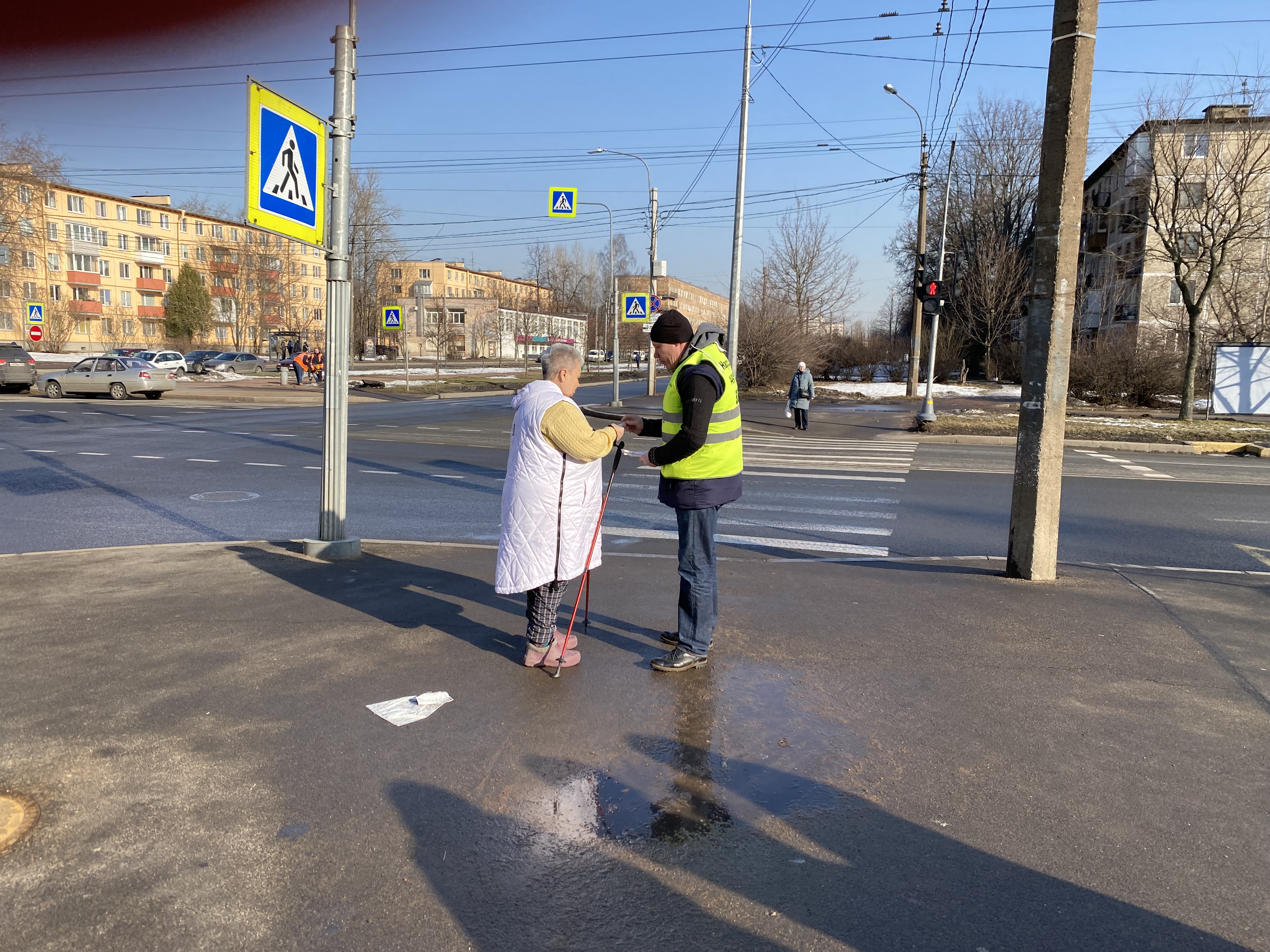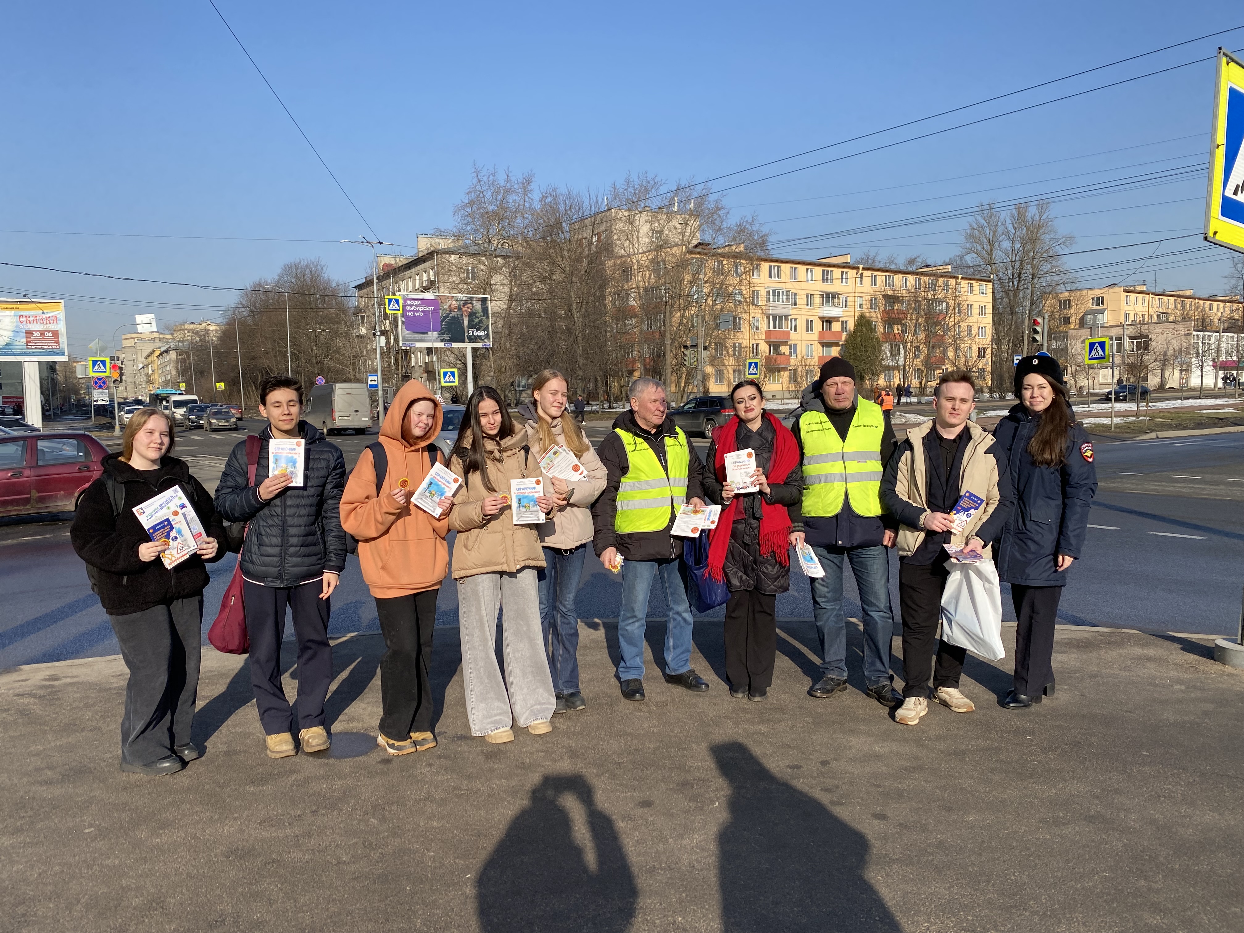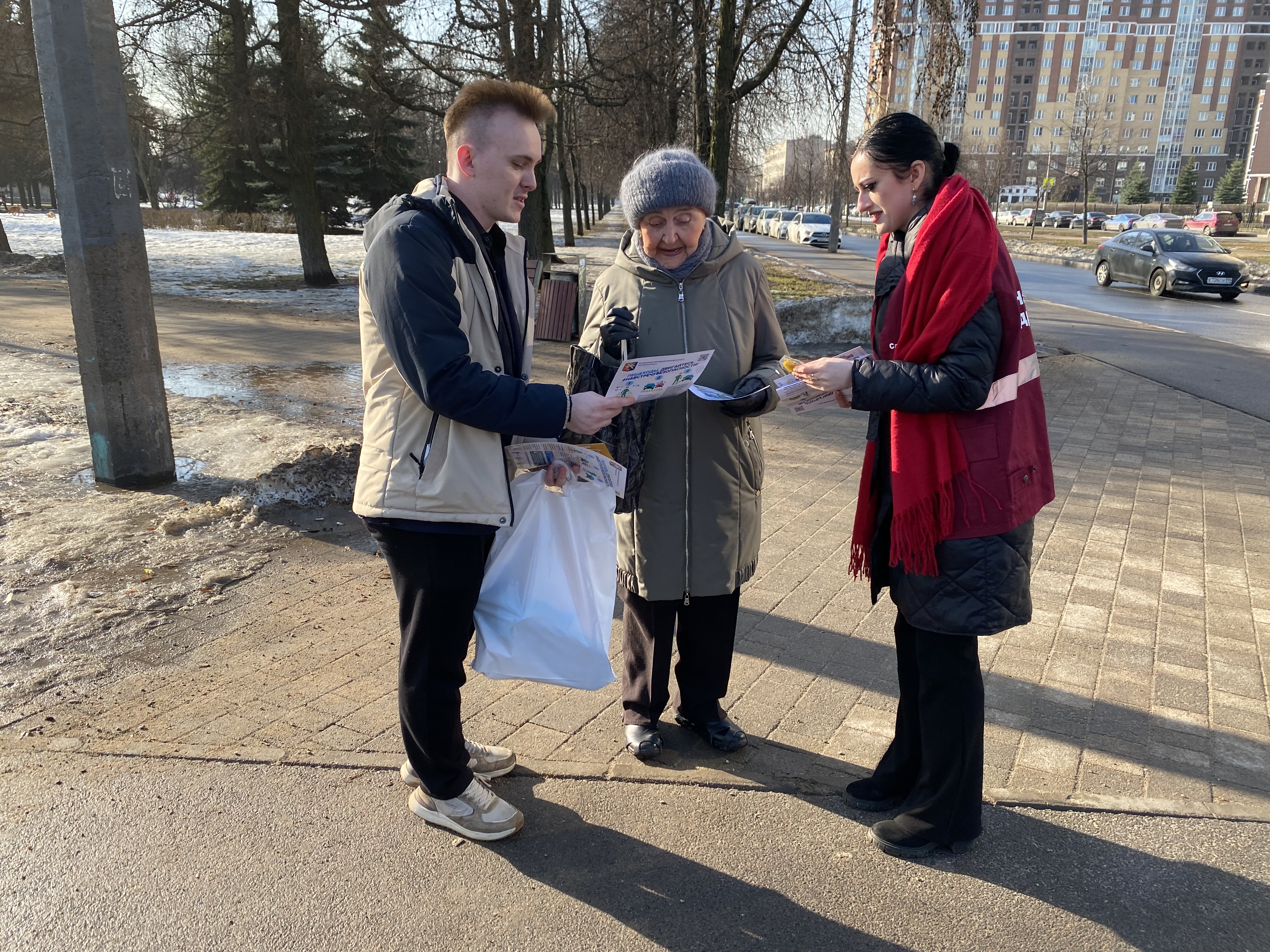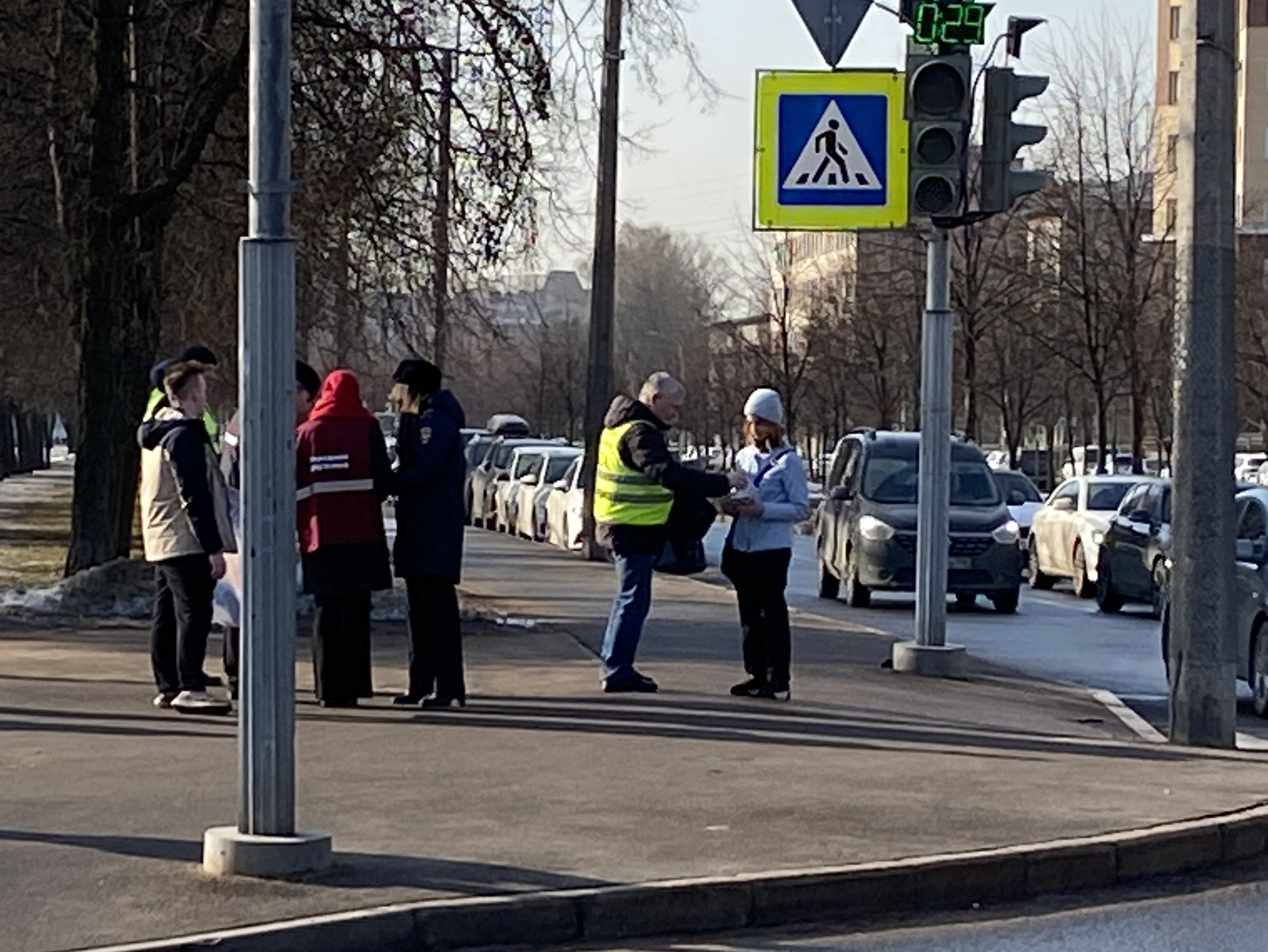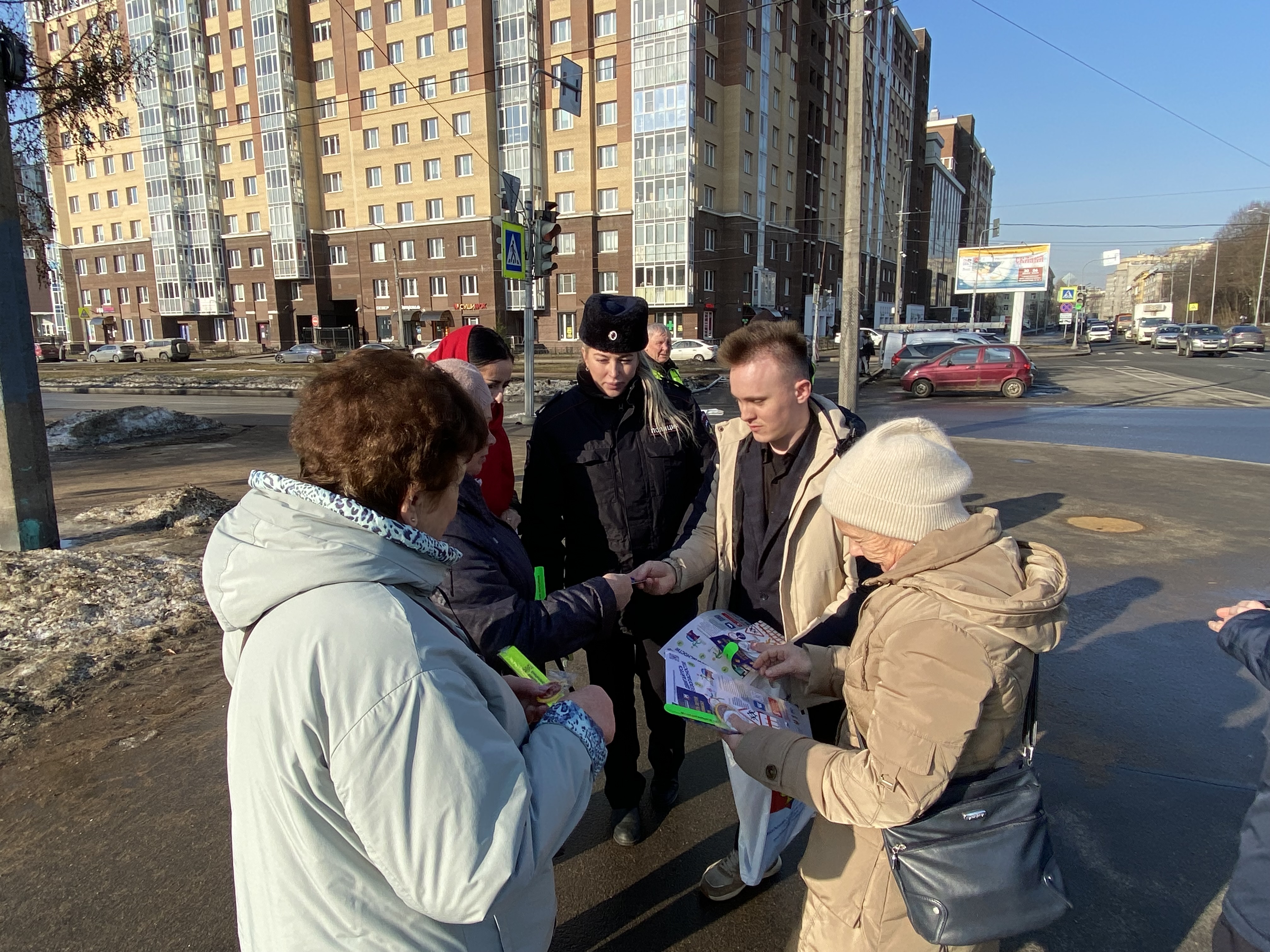 У перекрёстка возле Любашинского сада, на пересечении Замшиной улицы и проспекта Металлистов, жителям сегодня напомнили о соблюдении правил дорожного движения. В ходе совместного профилактического рейда сотрудники Госавтоинспекции, Местной администрации Финляндского округа и члены Народной дружины беседовали с пешеходами разного возраста и раздавали им памятки, световозвращающие брелоки и браслеты. Эти аксессуары особенно пригодятся в тёмное время суток — с ними водители заметят пешеходов издалека.