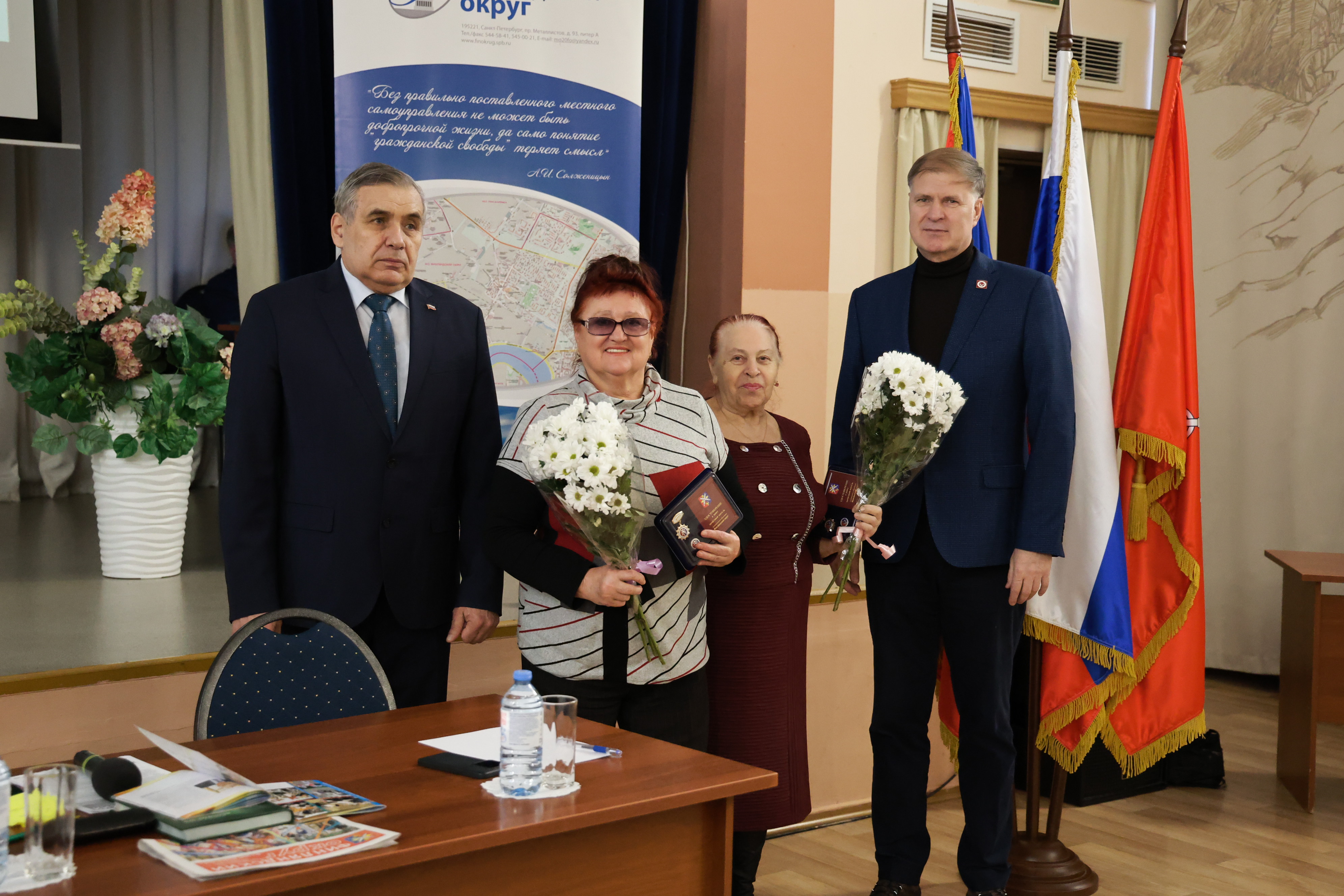 Перед началом отчёта состоялось вручение Почётной грамоты от Законодательного Собрания депутату Муниципального совета, директору школы №138 Светлане Константиновой и знаков «Почётный житель Финляндского округа» Галине Петренко и Людмиле Чекан. Был показан фильм о развитии и достижениях Санкт-Петербурга в 2025 году. Затем глава округа проинформировал жителей о результатах работы Муниципального совета и Местной администрации за прошедший год и ответил на вопросы из зала.