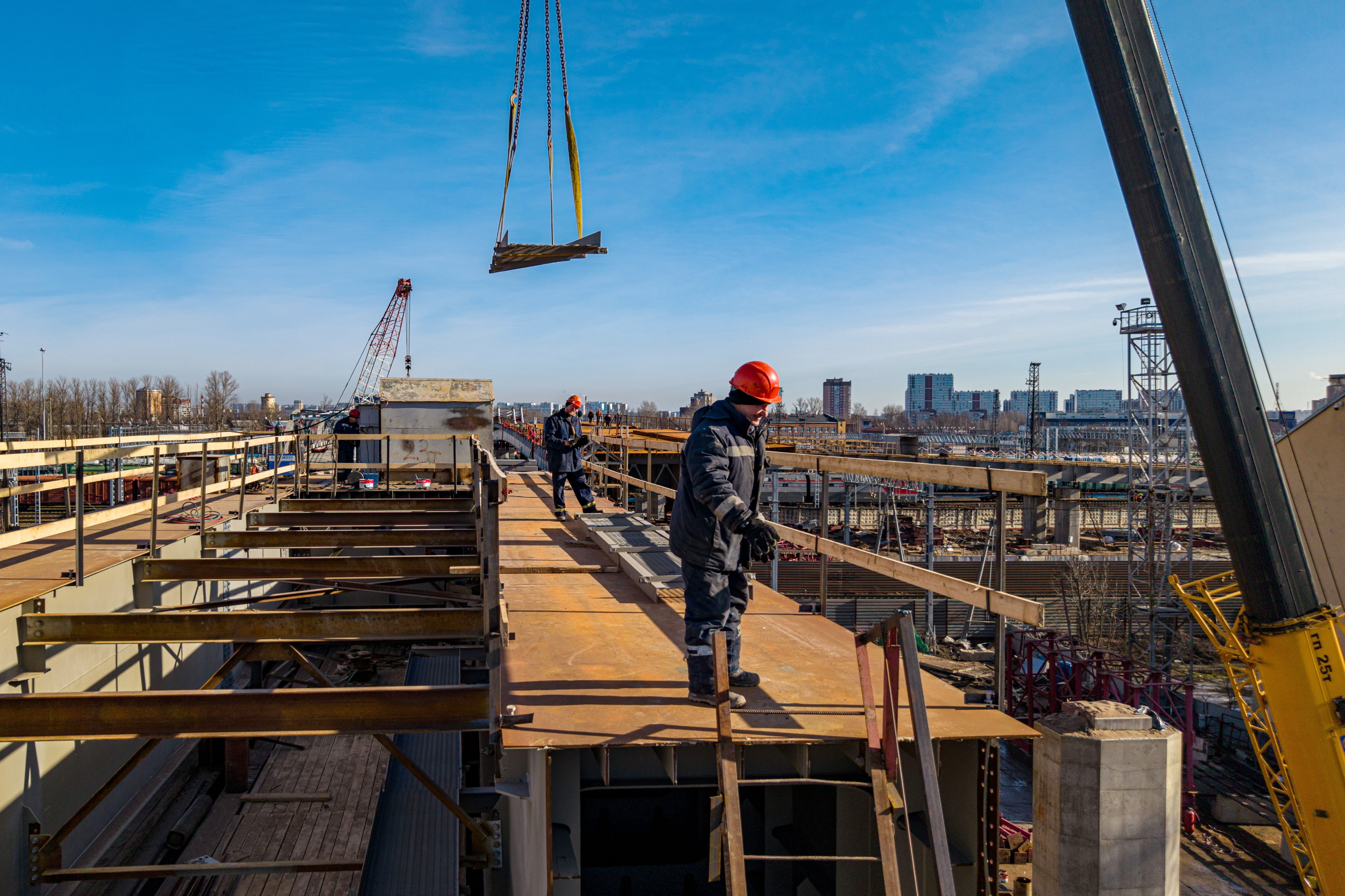 Параллельно в Петербурге продолжается реализация еще одного крупного инфраструктурного проекта реконструкция — Цимбалинского путепровода. Она идет в рамках одного из десяти приоритетов развития города - «Удобный общественный транспорт». Строители завершили надвижку пролётного строения путепровода правого направления над Октябрьской железной дорогой, и на сегодня строительная готовность объекта достигла 55%. Проект предусматривает строительство двух путепроводов – левого и правого направлений, которые возводятся параллельно. Все работы идут по графику