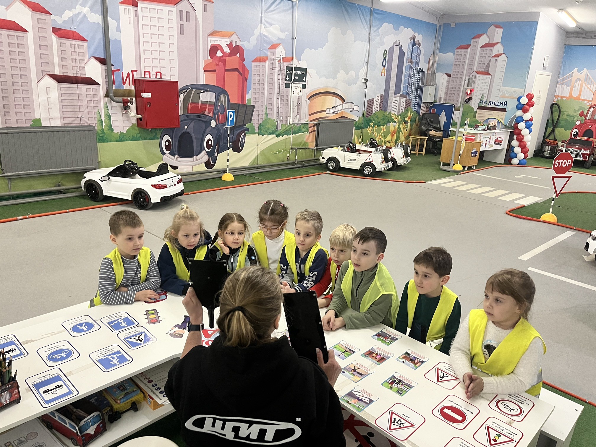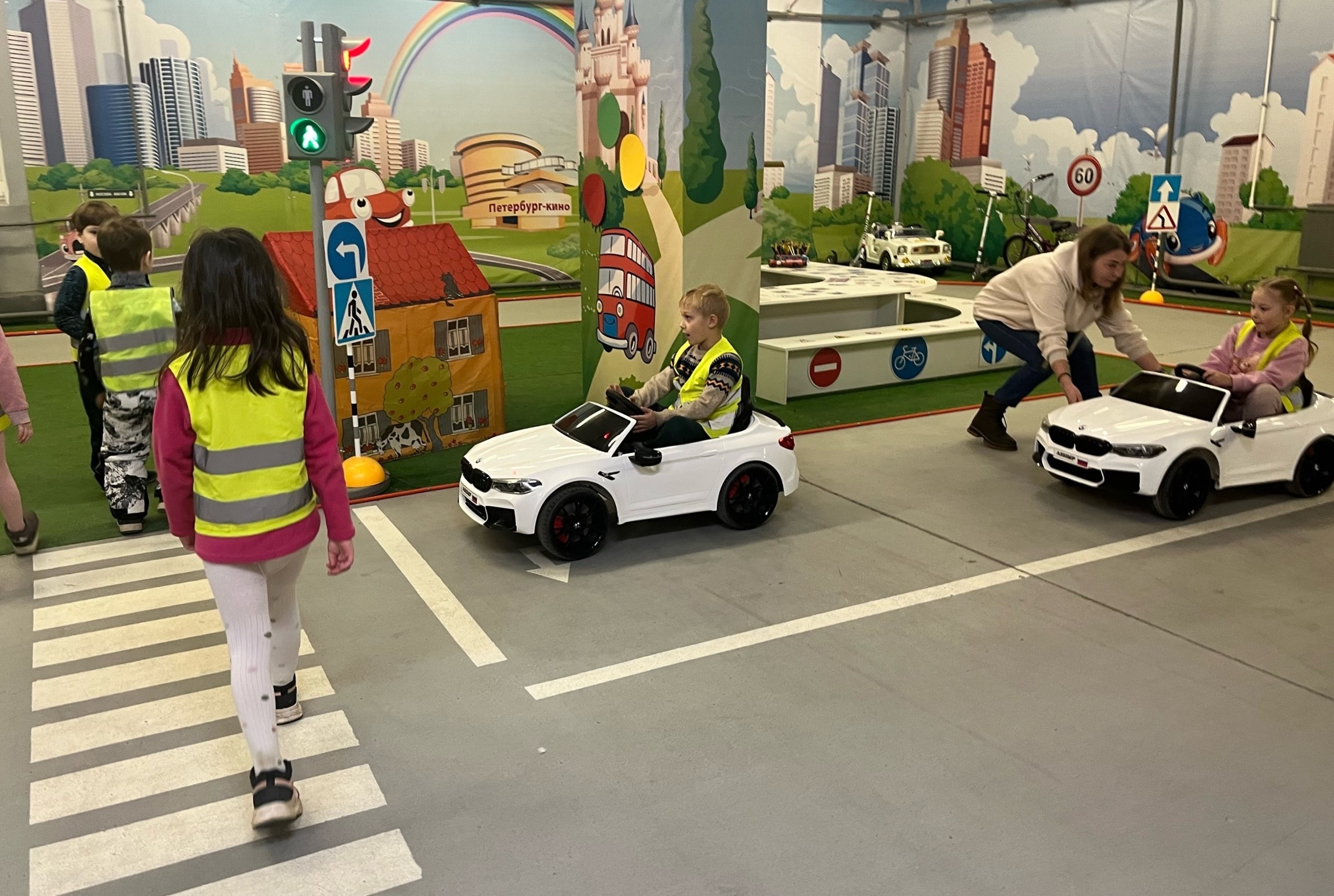 Занимаясь профилактикой дорожно-транспортного травматизма, занятия для маленьких жителей округа Местная администрация проводит на самых разных площадках. Одной из полюбившихся и детьми, и организаторами стал Автогородок, расположенный в здании «Фильмофонда» на Пискаревском пр., д. 32. В этом месяце там прошло четыре увлекательных урока по правилам дорожного движения с катанием на машинках, да ещё и с показом мультфильма. А побывали на них воспитанники детских садов №28, 41 и 42. Чтобы полученные знания не забывались, в конце мероприятия детям раздали специальные буклеты по ПДД - наглядное пособие с яркими иллюстрациями в вопросах и ответах.